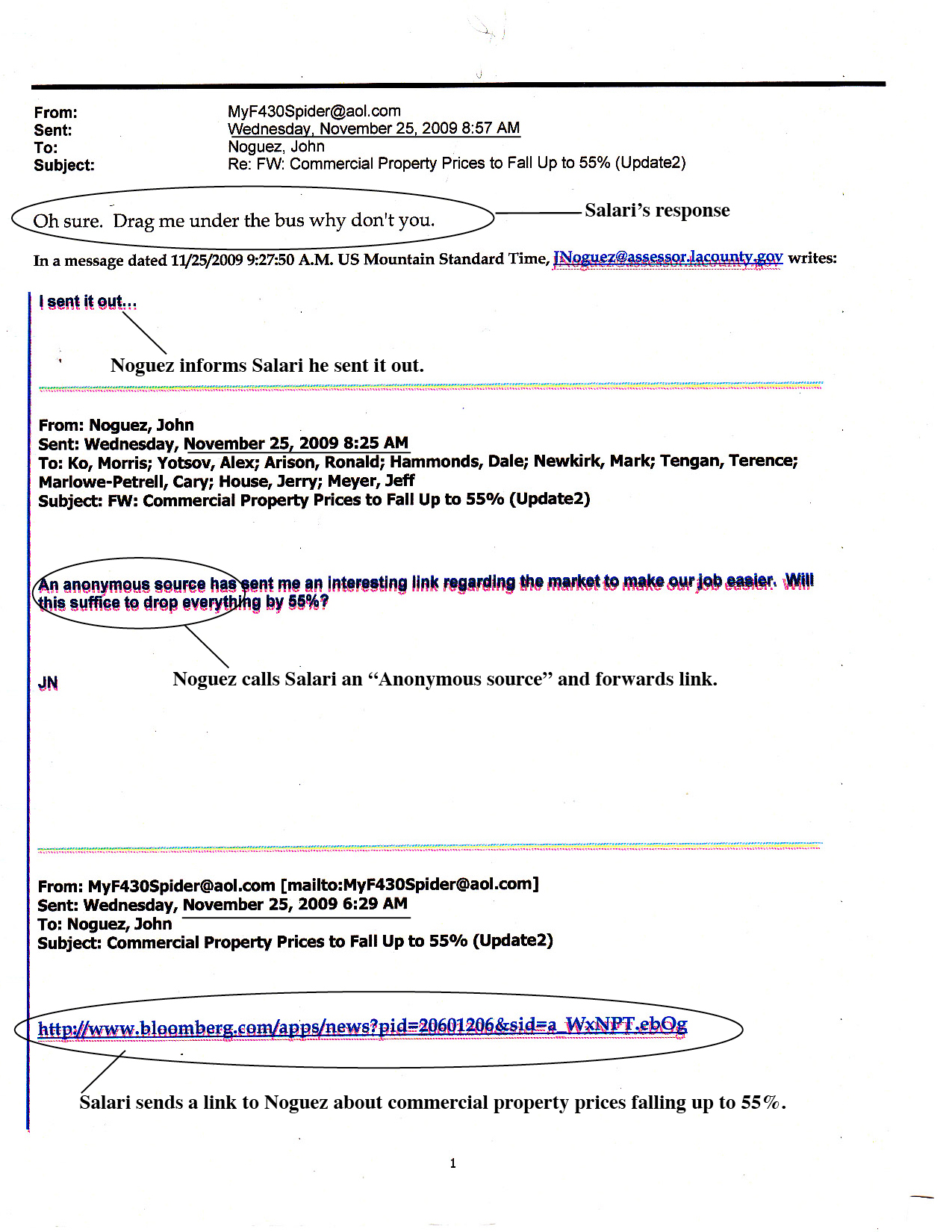 Back on Wednesday, November 25, 2009, Salari sent Noguez a personal email from his American On-Line account address MyF430Spider@aol.com at 6:29 a.m. under the subject line “Commercial Property Prices Fall Up to 55%.”