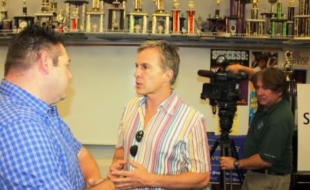 Kovacik, who is one of Southern California’s most visible and accomplished television news journalists, and a multiple Emmy and Golden Mike Award winner, visited Cerritos High School last week, along with a field producer, to begin filming interview segments with some of the orchestra members and their Director/Conductor, Tim Trost.