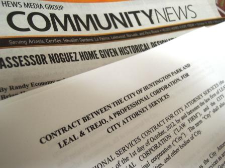 Huntington Park – Los Cerritos Community News has obtained the Huntington Park City Attorney contract between the law offices of Leal and Trejo-and taxpayers in this cash starved city could be on the financial hook to legally defend LA County Assessor John Noguez in any possible criminal charges he may face in the future, including the ongoing massive political corruption probe at the LA County Assessor’s office.