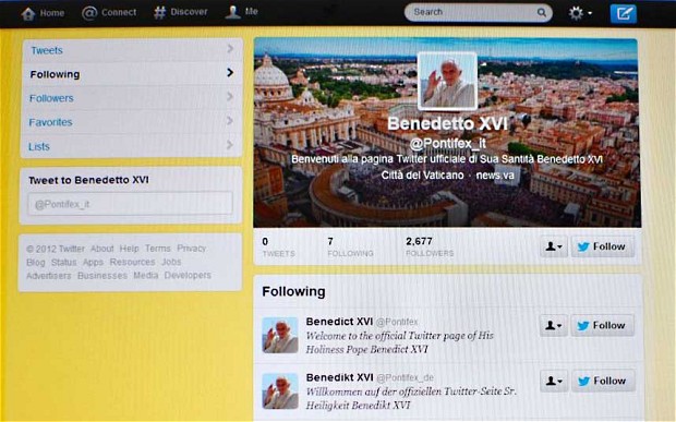 The Pope sent his first “tweet” in 2011 from what Vatican officials called a “generic” account.