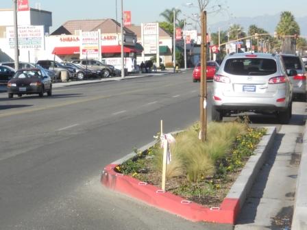 The 12 landscaped “bulb-outs” are part of the interrupted Artesia old downtown improvement project due to the loss of redevelopment funds. The original intention of the “expanded curbs” are, according to city officials to “lend a beautiful ambience” in that area of the City.