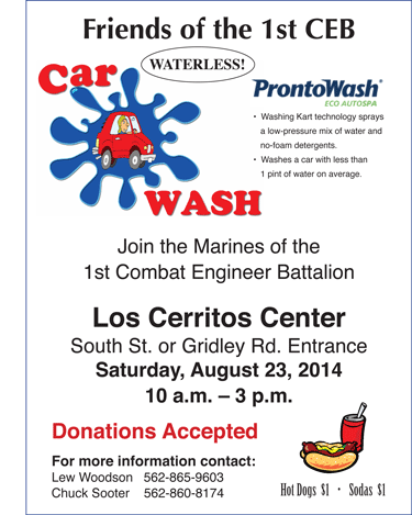The usual 1st CEB Marines Car Wash could not be supported this year because of the California drought. Based on experience, SgtMaj Krause, 1st CEB, suggested a “Waterless Car Wash”. Mr. Chuck Sooter of the Cerritos CEB did the research, and last week the City of Cerritos approved the event.