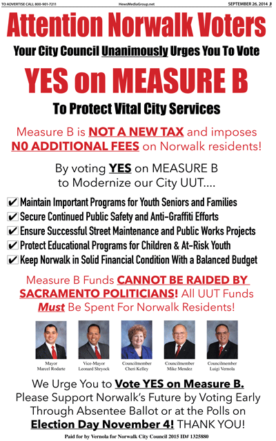 Norwalk City Council Urges Residents to Vote Yes on Measure B.