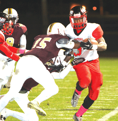Photo caption: Artesia senior running back Vincent Brown picks up yardage before being knocked out of bounds by Bellflower’s Austin Jones in last Friday’s game. Bellflower defeated the Pioneers 30-16 as Brown picked up 123 all-purpose yards.