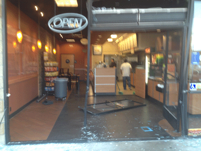 Damage to the Nissan was rather minor compared to the Subway, which had both doors completely taken out along with all the windows.