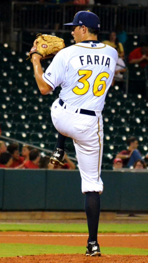 The 6-foot-4, 205 pound right-hander was selected in the 10th round by the Tampa Bay Rays in the 2011 amateur draft. For nearly four years, Faria spent most of his time in Rookie and High-A ball throughout the Midwestern and Southern states.