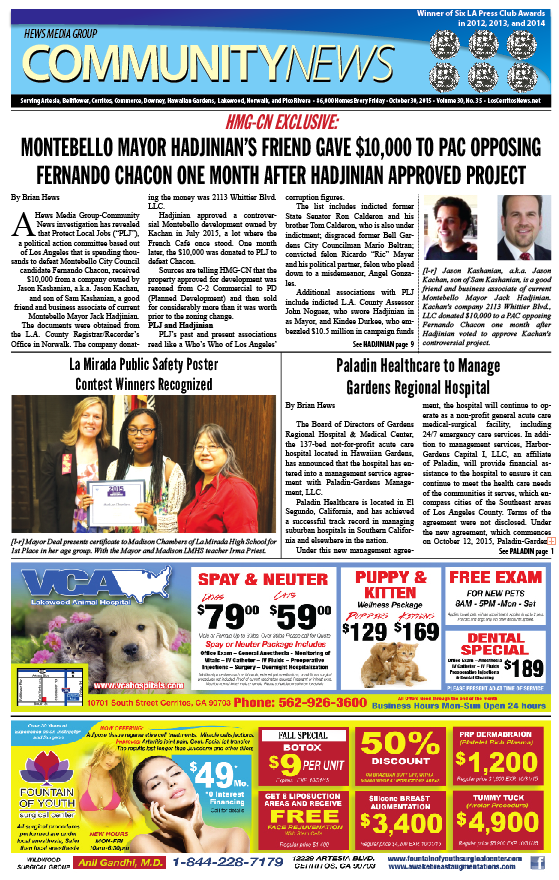 Oct. 30, 2015 Hews Media Group-Community News Front Page Preview