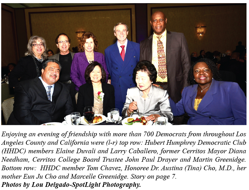Long-time Cerritos resident and community activist Dr. Austina (Tina) Cho, M.D. was one of 48 honorees who received the 2015 Los Angeles County Democratic Party’s Franklin & Eleanor Roosevelt Democrat of the Year Award Nov. 8 at the Long Beach Hyatt Regency Hotel where more than 700 Democratic activists attended an awards dinner to honor Cho and community leaders from throughout Los Angeles County.