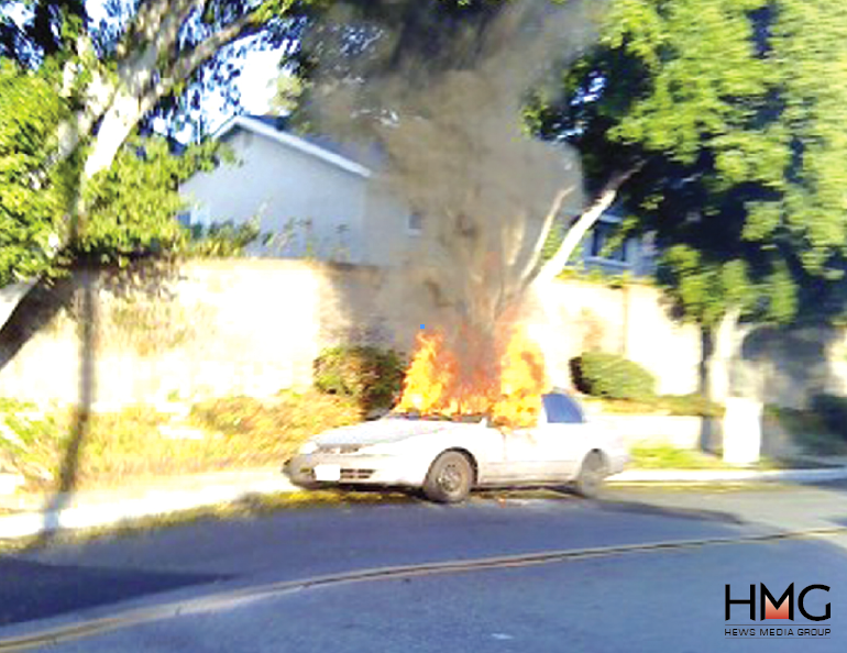 At approximately 7:47 AM, deputies and Los Angeles County Fire Department personnel responded to the call. When they arrived, they discovered a 1999 Toyota Corolla parked along the west curb and engulfed in flames. The Los Angeles County Fire Department extinguished the fire.