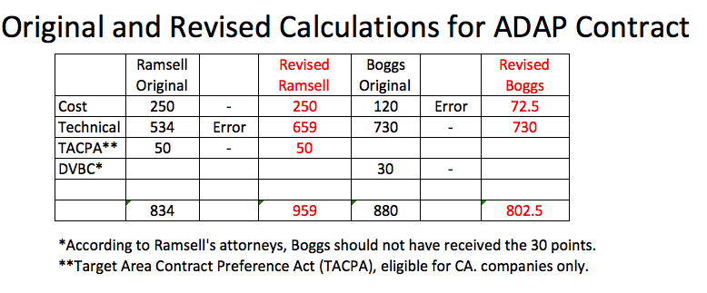 Even after all the calculations, illegal changes, and simple math calculation errors, the CDPH/OA awarded the contract to Boggs on Mar. 4, 2016 and sent an email to Ramsell officials informing them of the Boggs award.