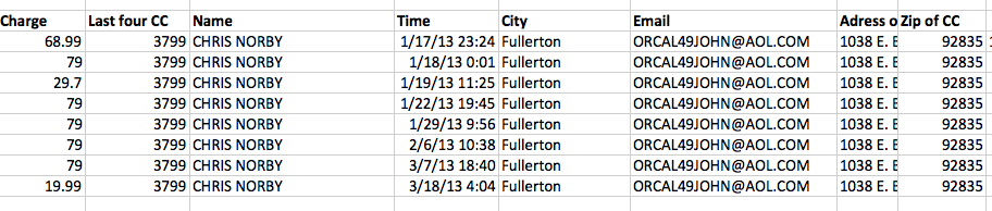 The name on the card was Chris Norby and the address was in Fullerton, the city where Norby lived at the time.