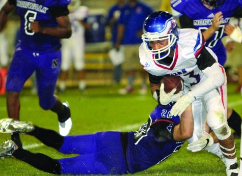 Three plays into the fourth quarter, Norwalk junior linebacker Brandon Barrett picked off Sanchez, which would be the beginning of the end as far as the Eagles were concerned. Four plays later, Navarro scored from 21 yards out. Following a three and out, the Lancers scored again when junior running back Daniel Faamatau scored on a 14-yard run. Then Butler ended the game’s scoring with a five-yard run with 3:14 left in the game.