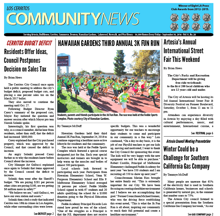 Hews Media Group-Community News Sept. 30, 2016 Front Page Preview