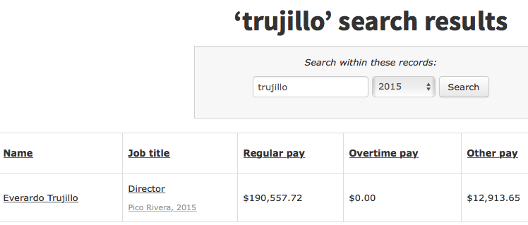 The application showed that Trujillo indicated he worked for Pico Rivera as the Director of Finance starting in Oct. 2014 earning $17,750 per month. A search on Transparent California confirmed that statement and shows pay records through 2015 for Trujillo.