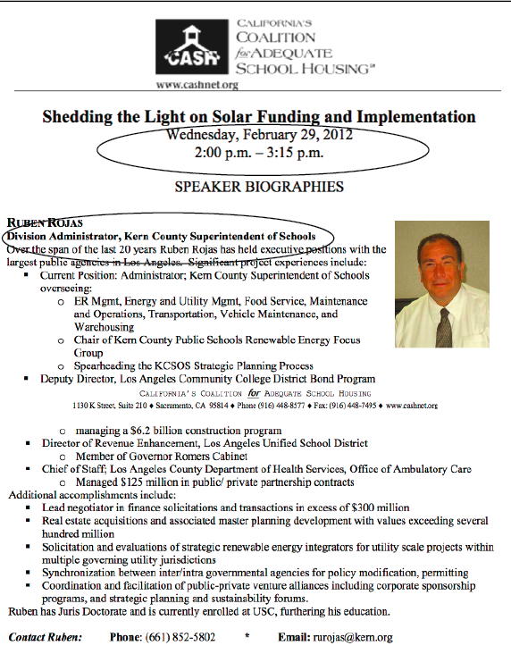 In truth, Rojas worked for the Kern County Superintendent of Schools as a Division Administrator from July 2011 to April 30, 2012.