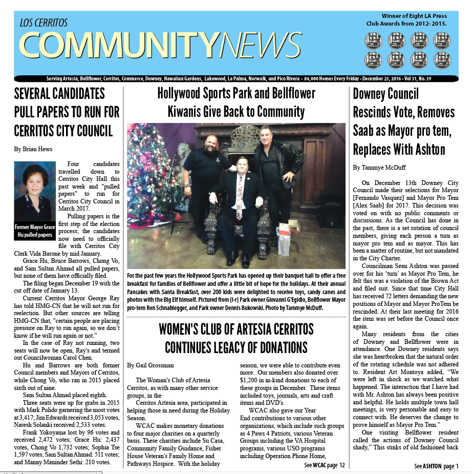 Dec. 30, 2016 Hews Media Group-Community News Front Page Preview