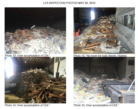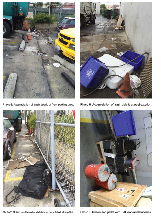 Researching the CalRecycle website shows, beginning in March 2015, several inspector photos of Commercial Waste’s facility with sub-standard storage of trash and e-waste.