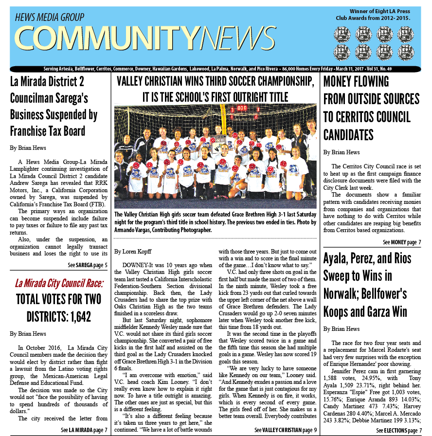 Mar. 10, 2017 Hews Media Group-Community News Front Page Preview