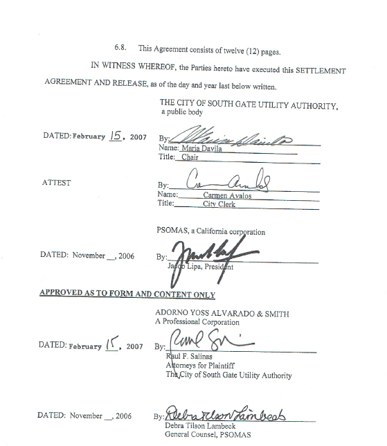In a settlement agreement forged just months later in 2007, and obtained exclusively by HMG-CN, Psomas paid an eye-popping $875,000 to settle with South Gate.