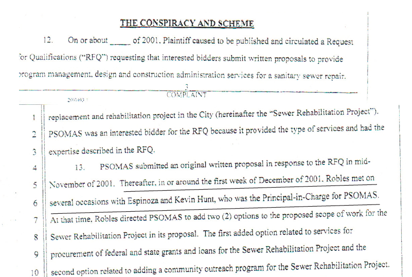 Robles subsequently told Hunt that if “you wanted the sewer contract you must include Espinoza and Gonzalez as consultants.”