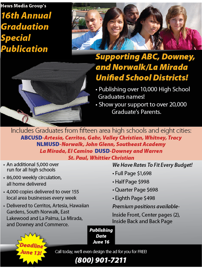 Congratulate the graduates and their parents with our 16th Annual Graduation Special Edition publishing June 19, 2017! Click here to inquire about our special edition!