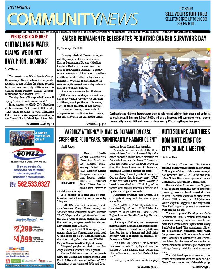 August 4, 2017 Hews Media Group-Community News Front Page Preview