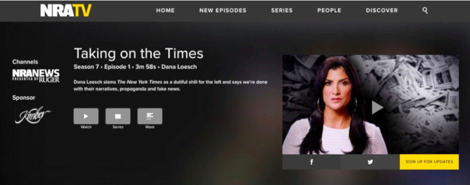 “The times are burning and the media elites have been caught holding the match,” NRA spokeswoman Dana Loesch says in one video aired on NRATV, the gun lobby’s web video site, as it shows footage of people fighting police, breaking storefront glass and burning the American flag.