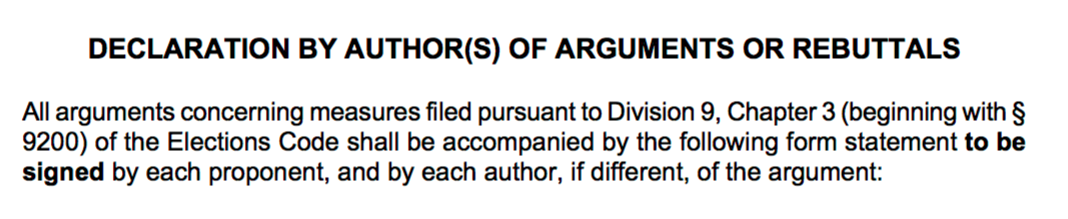 “Authors” fill out the Declaration and write in their arguments for or against the measure.