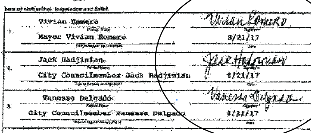 Councilwoman Delgado subsequently filed another Declaration, dated Aug. 28, with the Montebello City Clerk, this time with the correct personal signatures of her, Romero, and Hadjinian.