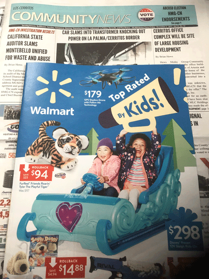 Two Walmart inserts are in LCCN this week; one is a 32-page early Christmas gift guide, the other is a 28-page regular monthly insert.