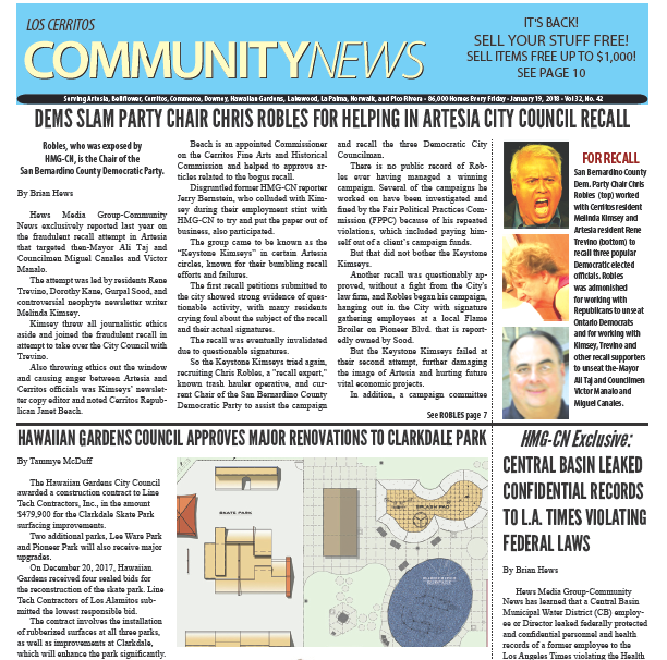 January 19, 2018 Hews Media Group Front Page Preview