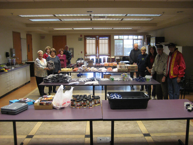 Pictured are 1st CEB volunteers at the packing area at the Cerritos Senior Center before assembly.