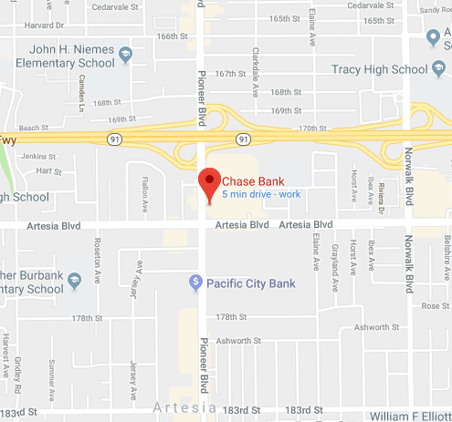 The bank was Chase Bank located at Artesia and Pioneer.