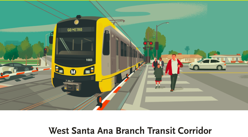 The project’s name originates from a portion of the proposed route south of the Metro Green Line on the I-105 that followed an old streetcar alignment known as the West Santa Ana Branch Corridor.