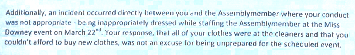 Line two indicates “being inappropriately dressed while staffing.” Click on image to see larger document.