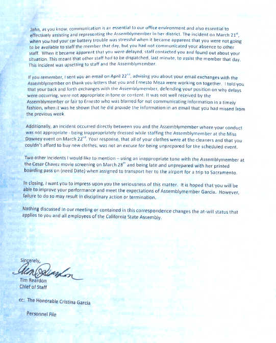 Within hours of his statement to the Bee, the 2014 discipline letter was released to the press along with telephone numbers of Garcia contacts.