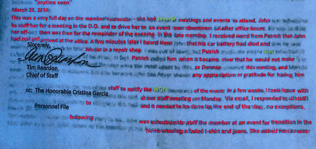 After obtaining the document, the Gilleon forensic team was able to ascertain some of the words that showed through on the two-sided print document.