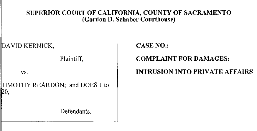 Hews Media Group-Community News has obtained a Complaint for Damages filed by Kernick and his attorney Dan Gilleon, against Reardon alleging “intrusion into private affairs.”