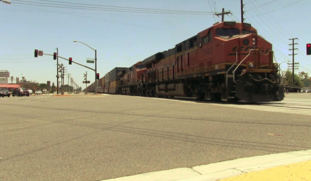 The crossing is traversed by over 110 freight and passenger trains and over 52,000 vehicles every day and has been rated by the California Public Utilities Commission as one of the most hazardous grade crossings in California.
