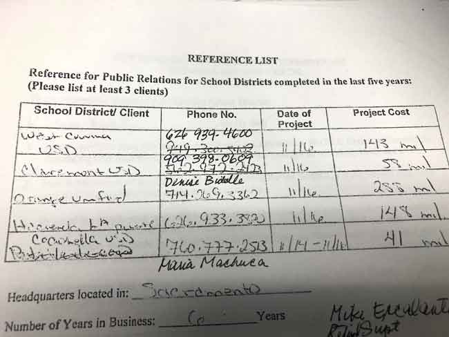 When informed of the findings, ABC Superintendent Dr. Mary Sieu told HMG-CN, “although she referenced Orange Unified and not Orange Unified School Bond on the Reference List, we believed she listed districts where she worked on public relations related to the school bond.”