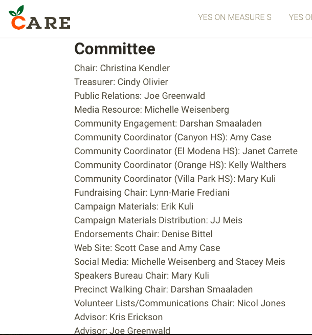 Quite the contrary, on the CARE website, Bittel was number thirteen down on the list as the Endorsements Chair of CARE.
