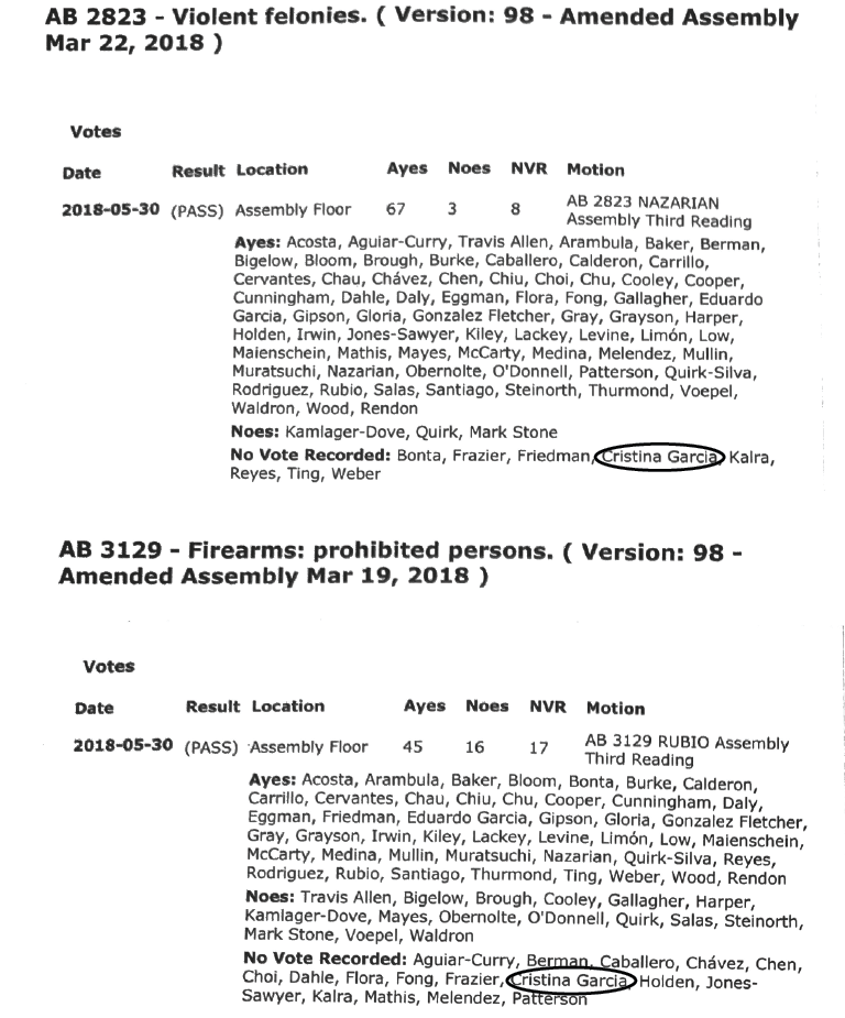 Once again, Cristina Garcia “recorded a no vote,” abstaining and allowing people convicted of domestic violence to own a gun.