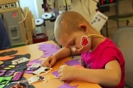 Michaels Stores’ volunteers create friendly ghosts with Shakira, a Miller Children’s & Women’s patient, at the Starlight Children’s Foundation Dream Halloween.