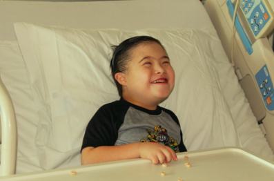 A Miller Children’s & Women’s patient is thrilled with his goodies from the “reverse trick-or-treating” with Michaels Stores and the Starlight Children’s Foundation.