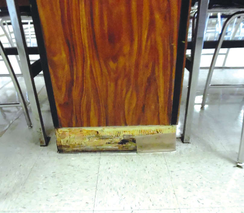 “No improvements have been made to the bathrooms since the 1970’s,” said Cota, “The boys bathroom has three stalls and eleven urinals, but no privacy dividers, plus two of the urinals need to be replaced. The girls’ bathroom, although it has several more stalls, they are made of wood and need to be swapped out. Each bathroom has one handicapped facility, and all too often we have flooding in one or both of the bathrooms.”