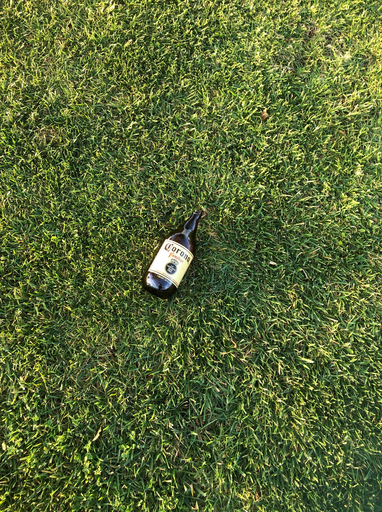 Two beer bottles thrown on the grass. All photos taken during one morning.