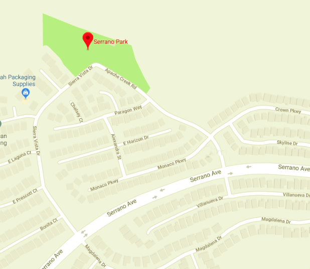 Serrano Park is located in the upper reaches of eastern Orange in a private community called Serrano Heights just west of the border of Orange and Anaheim Hills.