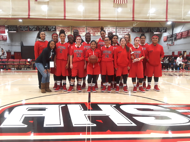 The Artesia High girls basketball team poses after finishing second in the Red Division of the Lady Pioneers Winter Classic Tournament. Artesia lost to Bolsa Grande High 40-37 last Friday night.