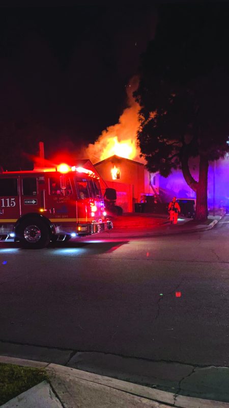 A house on the 18000 block of Stephanie Ave. in Cerritos caught fire last night, no one was injured. Emergency personnel from Los Angeles County Fire Department Stations 30 and 115 responded at 7:33 pm and joined in fighting the fire, limiting it to the second floor.