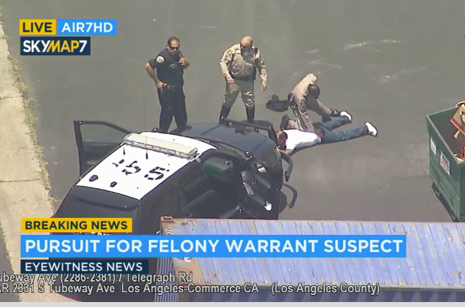 COMMERCE, Calif. (KABC) — A felony warrant suspect was taken into custody in Commerce on Friday afternoon after a high-speed chase that made its way through three counties, authorities said.